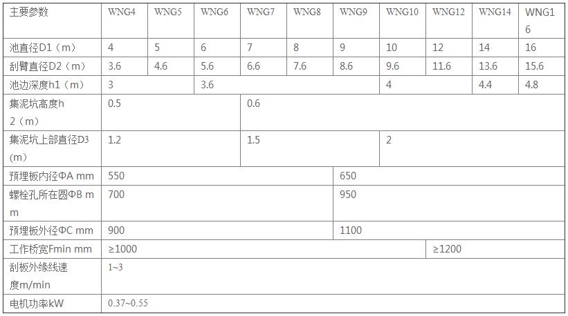 WNG 型濃縮池刮泥機用于污水處理廠重力式污泥濃縮池,將濃縮污泥刮集至池底中心集泥坑,以便進一步作污泥脫水處理。
