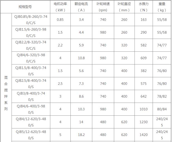 潛水?dāng)嚢铏C(jī):電機(jī)繞組絕緣等級(jí):F;防護(hù)等級(jí)IP68;工作制式:S1;